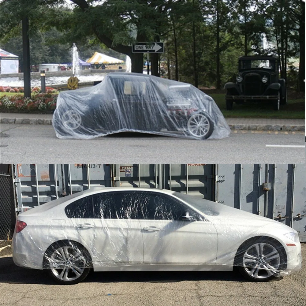 Large Clear Plastic Car Covers Disposable Temporary Paint Dust for Universal SUV Automobiles