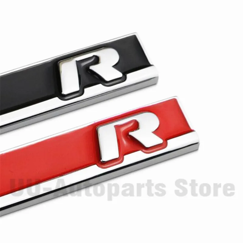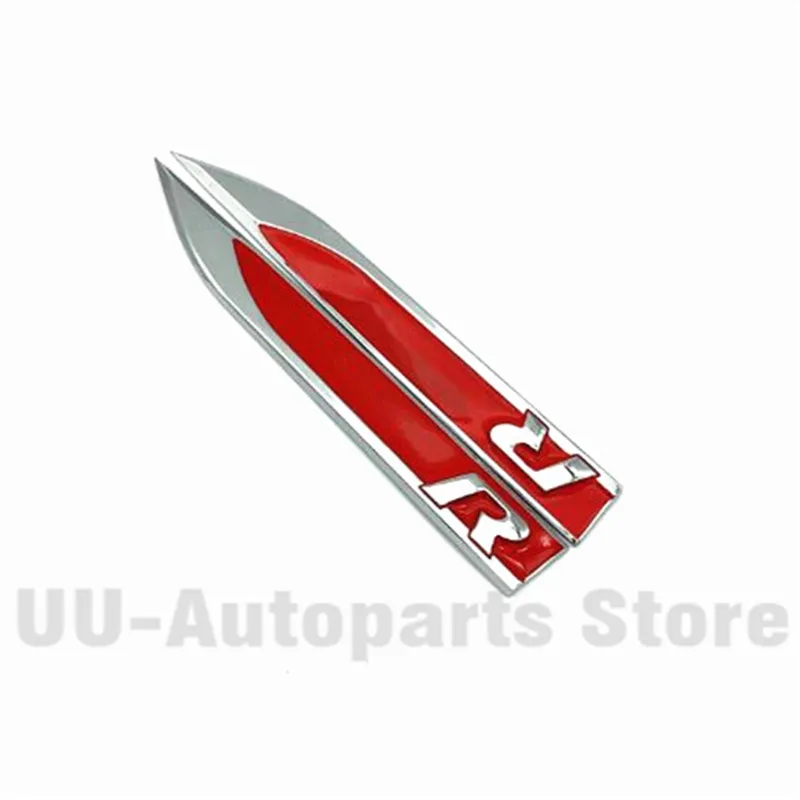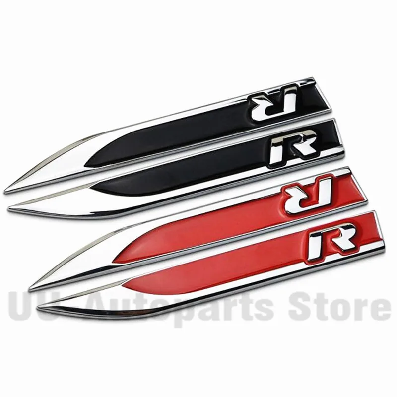2Pcs Great Metal R Logo Car Side Fender Skirts Knife Badge Emblem Sticker For VW Golf SUV-Red