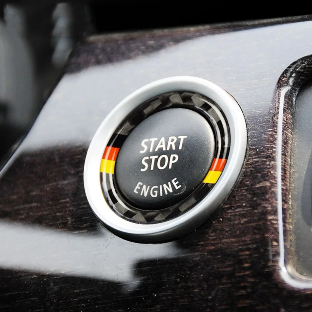 New For Bmw E90 E92 E93 Car Engine Start Stop Ignition Key Ring Stickers Carbon Fiber Circle M Stripe Trim