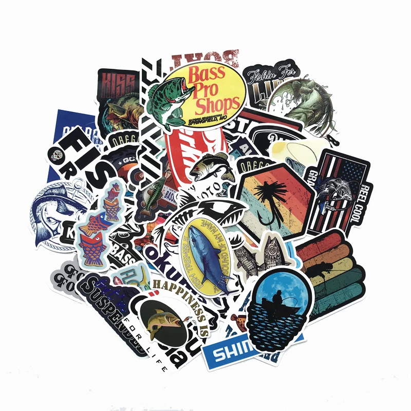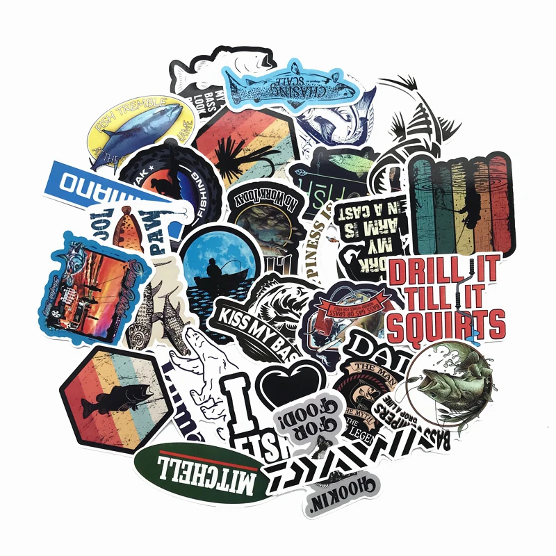 50PCS Funny Fisherman Go Fishing Car stickers For laptop suitcase Freezer Vinyl Car-styling DIY decoration Decals Car Sticker