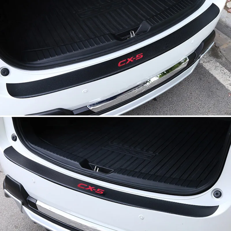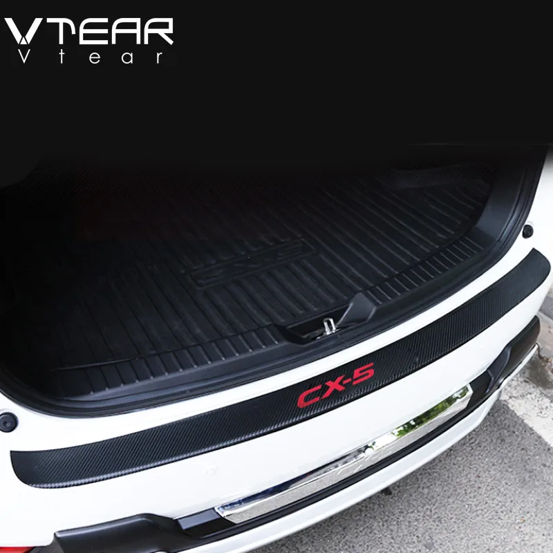 Vtear For Mazda CX-5 CX5 Accessories car Trunk Protection board Rearguards Rear Bumper leather Carbon fiber Stickers 2012-2019